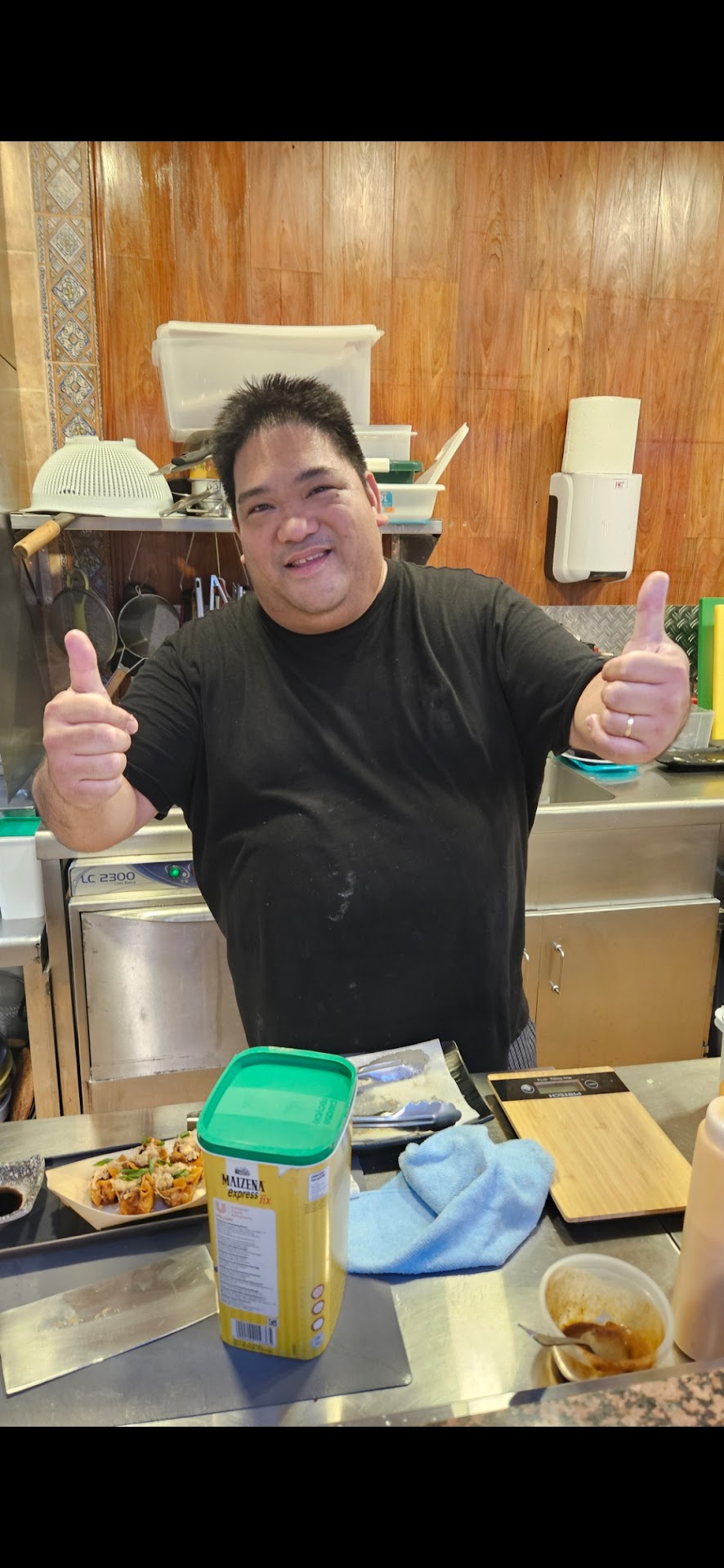 Vi rekommenderar varmt ett besök här till alla som gillar asiatisk mat med äkta smaker och hög kvalitet. Bifogar en bild av kocken här 🙂 och även bilder på maten vi åt, tack...