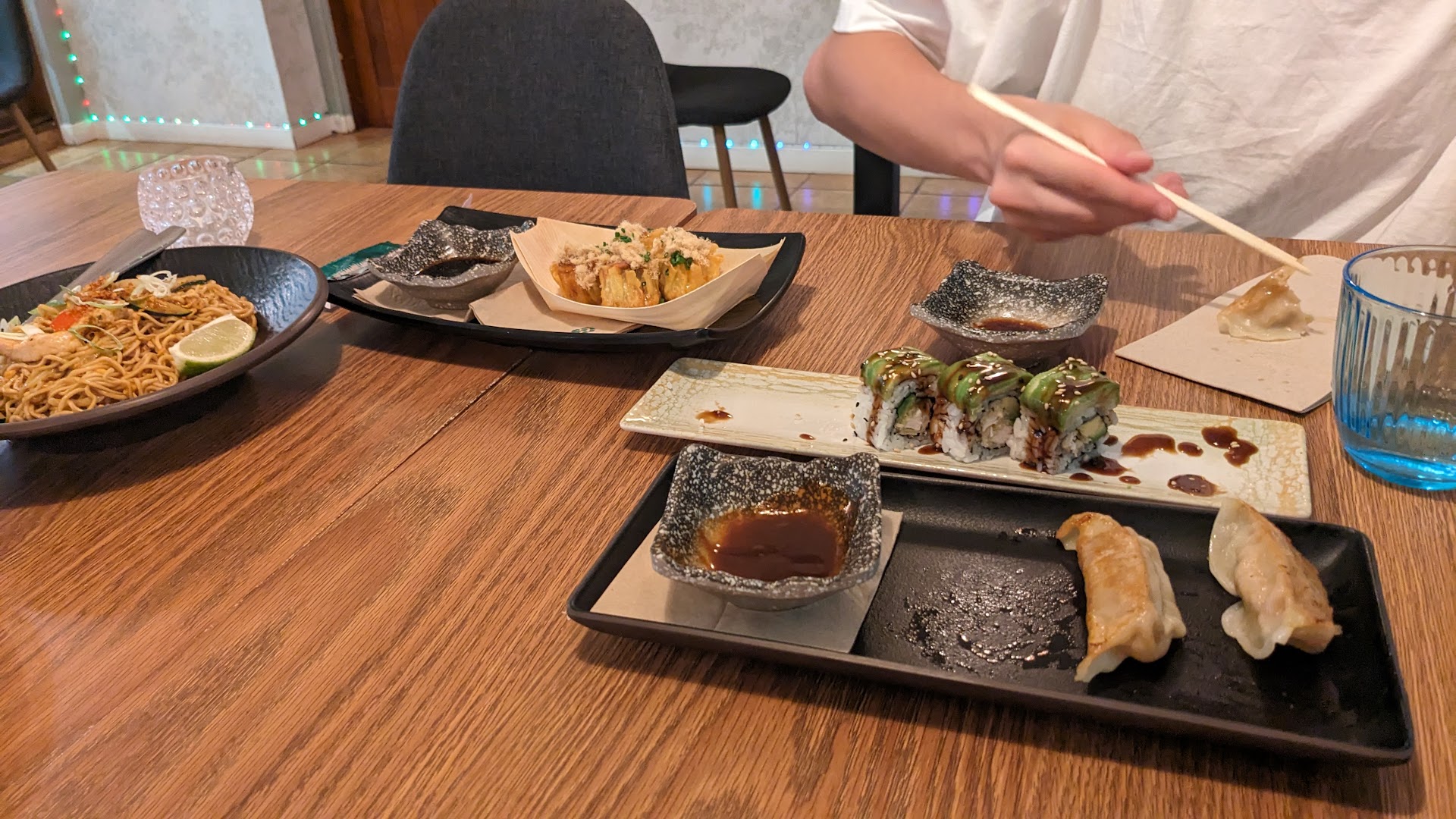Para empezar,no me puedo sentir más agradecida por la exagerada amabilidad y comprensión q mostraron al tener una reserva con ellos por grupon y no poder asistir por DOS veces por una emergencia grave y no poder anular la reserva a tiempo. Pues hicieron de todo para poder arreglarlo y q yo no perdiese el dinero y pudiese ir a comer con el cupón. Por lo demás todo son dieces,la camarera q nos atendió fue encantadora,el lugar es sencillo pero muy bonito y con muy buen ambiente,con una música ambiental muy agradable. Todo me pareció muy limpio. En las fotos muestro lo q pedímos,al comentarle q era alérgica al marisco tuvo mucho cuidado con todo y me cambió una salsa por si acaso esa me pudiese dar reacción. Los platos son abundantes,terminas muy muy satisfecho,y podría decir q es el japonés q más me ha gustado,estaba todo riquísimo!!! Mención especial para sus gyozas y para ese arroz con leche con mango q está espectacular. Los recomendaré a todo el mundo xq...