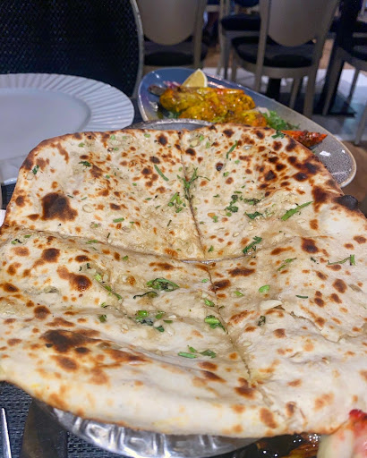 The menu was extensive with a large range of tandoori dishes and curries. We both went for something different that we havent seen back home. Laura had the Chicken & Cheese Tikka which was served on a sizzling platter with onions and peppers. She also added a side of Masala sauce and Egg Pilau Rice to accompany her main. I ordered the Keshuri Chicken which was coated in a cashew nut sauce. It was gorgeous, paired with a Side Salad and Mixed Raita. Of course we had a naan bread to share and chose the Garlic & Cheese Naan.