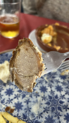 EN TERCER LUGAR, la carne y las patatas del segundo plato para estar pasadas no dejasteis ni un solo trocito. A la carne me refiero al churrasco.