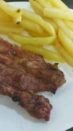 Cuando llegamos la temperatura del local era excesivamente alta (el aire acondiconado acondicionaba poco). Mi pareja casi se cae de la silla ya que estaba rota. Destacar la nula profesionalidad y mala educación de la camarera joven de pelo rubio, ya que cuando le pregunto si podemos comer de carta, ya que únicamente queríamos una buena carne a la brasa nos dice que no, que hay demasiada gente y que solo menú. Dicha camarera pasa a detallar los primeros platos del menú, y después de nombrar 4 le pregunto si no hay nada más de primero y entonces me dice más platos. Pedimos ambos un gazpacho andaluz, que estoy seguro que en Andalucía, estaría tipificado como delito. De segundo pedimos churrasco a la brasa (entre 4 platos a la brasa que nos nombro la camarera antes mencionada). En las fotos que adjunto se puede ver el churrasco casi carbonizado y empapado en aceite (cosa que no entiendo como puede estar el plato empapado en aceite si es a la brasa a no ser que lo rocíen luego con generosidad tratando de darle una jugosidad inexistente). Posteriormente veo que en otra mesa llevan chuletas de cordero y le pregunto a la camarera que por que no me dijo que habia chuletas de cordero... y que por qué había omitido platos y tiene la desfachatez de echarle la culpa a mi pareja diciendo que él la interrumpió y no le dejó continuar, cuando ni siquiera había abierto la boca.