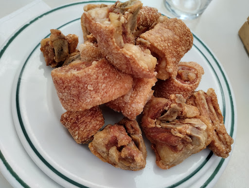 Read moreUn restaurante en la calle más popular del pueblo. Había mucha gente tomando el aperitivo cuando llegamos y se ve que eso tenía desbordados al personal, porque después de sentarnos en la terraza tardaron más de 15 minutos en siguiera preguntarnos que queríamos de beber. Y para pedir de comer (que casi parecía que les molestará) básicamente la camarera nos canto 4 platos sobre la marcha sin decirnos precios no nada (carta no vimos en ningún momento). Hay un trasiego constante de camareros pero el servicio es muy deficiente. En el las positivo la comida que probamos eran una especie de torreznos pegados al hueso (rabo de cerdo creo) que estaban espectaculares y una sepia también bastante rica (aunque sin llegar a ese nivel). Los postres son embargo no decían nada de nada. Por otro lado no es caro (28 euros para dos con dos cervezas)....