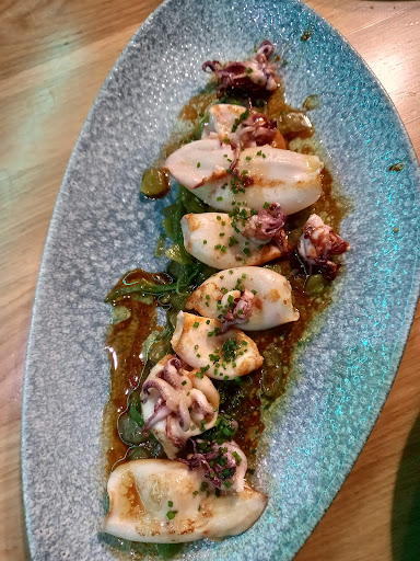 El tercer y último factor, por su puesto, es la comida. Tiene dos partes: la parte del bar, y la parte del restaurante. Como primera vez, elegimos la parte de restaurante y todos los platos que comimos la verdad que exquisitos. Las croquetas japonesas, un concepto diferente. También los chipirones que estaban muy muy tiernos y tenían un sabor increíble, es el plato que más nos gustó con diferencia, no dejamos ni la salsa en el plato. Para completar la cena pedimos los canelones y la hamburguesa de buey que estaban también muy buenos. Para finalizar, la tarta de queso ¡ESPECTACULAR! y la ración es grande también lo que es de agradecer.
