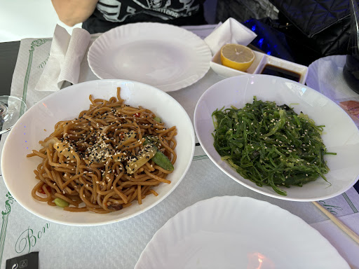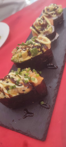 Read moreSintiéndolo mucho cualquier "parecido" con lo que es comida ya no "japo" sino asiática es "casualidad" Sushi ,makis ,Gyozas,noodles,tallarines, en fin un despropósito...Nosotros pedimos rollitos,congelados prefabricados y me atrevería a decir de que gran superficie son,Gyozas ídem, tallarines (eran spaguettis)pasados de cocción y la verdura un poco de zanahoria y cebolla y los langostino (conté 3)...california rolls en tempura (incomible) lo dejé ,arroz quemado,"empapuchado" de grasa (eso no era ni aceite de girasol, ni sésamo...no sé en qué grasa se hizo) y los que me llevé para casa ,aguacate y salmón ,lo único fresco y que era "adecuado" el arroz una masa(pasado de cocción, una masa)y el alga sin hidratar.No volveré.Tampoco esperaba un Shushi de "alto nivel" pero por lo menos cómo el que compró en puestos de grandes superficies que te lo hacen al día...