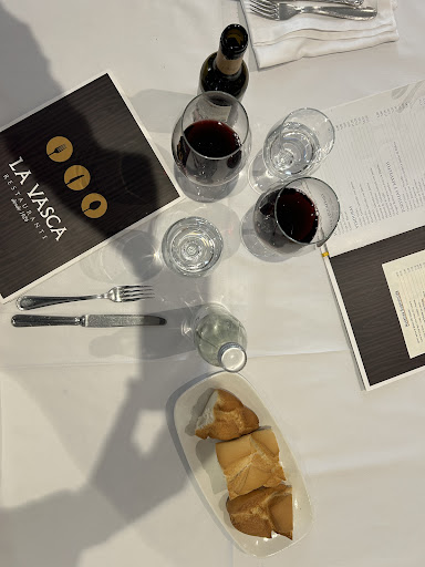 Que ganas teníamos mi pareja y yo de venir aquí. "La Vasca ". Este restaurante tan conocido. Ya hace tiempo amigos y compañeros de trabajo me hablaban maravillas de dicho lugar. Por fin llega el día, reservamos mesa hoy miércoles día 13 de agosto, para celebrar nuestro aniversario. Entramos por la puerta, subimos las escaleras y al rato, nos reciben. Nos sientan al final. En una mesa compartida. Era rectangular, de seis comensales,.. pero había dos más. La verdad, esto no nos gustó mucho. Pero tampoco le dimos mayor importancia ya que pensabamos que íbamos a comer estupendamente. Una camarera nos trajo la carta. Pedimos, para compartir, queso de oveja y revuelto de ajetes y gambas. Yo me pedí solomillo con salsa de hongos y mi pareja, lubina salvaje. Nos sirve lo platos para compartir y bastante bien en el caso del queso. El revuelto, mi pareja, no pudo comer demasiado ya que estaba muy, muy poco hecho. Hasta tal punto, que daba la sensación que estaba hecho a toda prisa y las gambas congeladas. Mi solomillo, calidad muy buena. Pero otra vez, daba la sensación que hecho a toda prisa. Lo pedí, al punto más y estaba casi quemado por fuera y por dentro crudo. EN EL CASO DE LA LUBINA: Nos pareció, sinceramente, un engaño. Pero un engaño, en varios sentidos. Primero en la carta ponia Lubina, y cuando lo vemos en el plato, vemos una mini ración de Lubina. No me lo podía creer. La suela del zapato, del señor que tenía al lado era más grande. Le pedí a la camarera la carta para comprobar si ponía Lubina o ración de Lubina.efectivamente, ponía Lubina. Le dijimos a la camarera que esto no nos parecía bien. Que la gente al pedir, podía entender que se le iba a poner una Lubina y no , una mini ración. Nos dijo, que se lo iba a comentar al responsable y que ya vendría a la mesa y nos diría algo. O tendría algún detalle. ( Que nosotros no queremos naa ). Y nada de nada. Nada de disculpas. Pues nada amigos , que os siga yendo muy bien con vuestro famoso restaurante, pero nosotros no volveremos...