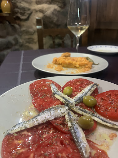 Read moreSitio muy bonito y con productos de la tierra. El dueño tiene mucha labia y te puede llevar a equivocación. Comimos el menú del día, probamos el vino que hacían ellos mismos y no estaba nada mal, algo caro para ser un vino de la casa, el queso con aceite, los tomates con boquerones y los zorongollos muy buenos. Los segundos platos nada que ver, carnes secas y patatas congeladas. Algunos comensales habían terminado y a otros no les habían traído los primeros platos todavía. Fue un autentico desastre ya que tardamos casi tres horas en comer, diría que la cocina no da a basto y eso que sólo había cuatro meses. Después de tanta tardanza tampoco tuvieron ningún detalle. Se deberían de limitar a servir sus productos que son muy buenos, no están preparados para...