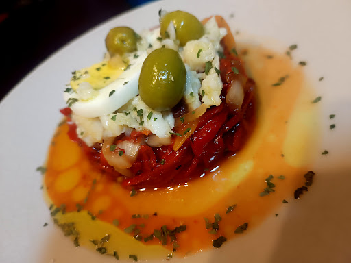 Llegamos a las 14:00, Los primeros para comer. Y tardaron media hora en sentarnos (la excusa: todavía no estaban terminadas las "patatas meneás"; aunque les dijimos que nosotros no íbamos a tomarlas...) Mientras, consumimos algo en la zona de bar: un verdejo, que no estaba mal, y un botellín de cerveza (del producto más básico de una marca habitual: no tenían nada más en materia de cerveza...) Por fin nos sientan a la mesa. A pesar de que en la publicidad exterior se señala "a elegir entre X primeros platos; así como entre Y segundos platos", no hay menú, sólo carta. Y la mayoría de los platos no están disponibles. Pedimos dos primeros y dos segundos para comer, y de beber, cerveza (un primer botellín, seguido de un segundo: no había otra alternativa) y un tinto de verano, con un gusto particular. De nuevo otra media hora (a pesar de que sólo había tres mesas ocupadas) hasta que llegaron los primeros platos. Y eso que eran platos fríos (tomates con boquerones y una especie de ensalada de pimientos con bacalao y huevo cocido). Y por resumir, en cuanto a calidad de los platos: media, en todo caso inferior al que en otras ocasiones hemos disfrutado en el pueblo. Y a precios notablemente más elevados... Para finalizar, no pudimos pagar con tarjeta de crédito ("nos hemos quedado sin cobertura" fue esta vez la excusa). Pagamos en metálico, pero tampoco nos dieron ticket... Definitivamente poco recomendable. Nosotros al menos no volveremos. Hay en Miranda otra oferta de sobra, con mejor calidad y servicio, y a mucho...