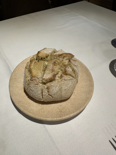 Fuimos a cenar por recomendación de un amigo ya que era su cumpleaños en unos días y decidimos celebrarlo aquí. Para empezar el restaurante nos pareció muy elegante, bastante silencioso para poder conversar y tener una cena agradable. Nada más sentarnos nos preguntaron si deseábamos pedir vino o alguna bebida mientras revisamos la carta y nos trajeron unos trozos de focaccia para abrir boca. De entrante escogimos el pan de hogaza, para mi gusto está bien pero creo que se puede hacer mejor para la calidad que tiene el restaurante. El segundo entrante fue una ensaladilla rusa tradicional, la presentación fue muy buena, la ventresca espectacular, el crujiente de kikos no se notaba apenas y la mayonesa estaba muy buena, creo que es un plato de 10, a continuación nos trajeron los brioche imperiales, este plato nos gustó ya que la costilla mechada estaba muy buena, así como el pan brioche y la combinación de sabores es otro plato de 10. Antes de traer el siguiente plato nos trajeron un plato con cecina de buey al cual nos invitaron y era un obsequio de la casa, estaba muy buena, para mi gusto es una carne con un sabor más fuerte, esto no significa que no esté buena pero si es un producto de calidad con un sabor a carne bastante pronunciado. Lo siguiente que nos trajeron fue la berenjena a la llama, el plato en sí estaba muy bien, para nuestro gusto la berenjena debería de tener más toque a llama, le faltaba ese toque ahumado digamos. Por último nos trajeron el corte de lomo bajo con 90 días de maduración de vaca rubia gallega, aquí lo que nos gustó fue que realmente fue un corte muy bueno y del peso que nos dijeron. El servicio era muy amable, iban retirando platos vacíos y preguntándonos qué tal estaba la comida, muy atentos y respetuosos, es de los pocos sitios que he ido y el trato es un 10 de verdad, recomendable para una cena con amigos cercanos o con tu pareja. Fueron bastante rápidos y mientras esperábamos nos trajeron unas pequeñas copas de un vino rosado, muy muy bueno y que también fue invitación por parte de la casa. Nos trajeron la carne y unas patatas fritas caseras las cuales elegimos ya que también podrías elegir patatas asadas, a mitad de este plato pedimos otro bol de patatas fritas el cual no nos cobraron, se puede ver en el ticket. Para culminar la cena pedimos dos postres, por recomendación del camarero también elegimos la New York Chese cake, y por recomendación de nuestro amigo elegimos el pecado de chocolate. Para empezar el pecado de chocolate se nota que es una tarta casera, increíble de sabor y inigualable, las texturas y la presentación culmina la experiencia. Por último la tarta de queso era espectacular, de las mejores que he probado. Nos trajeron la cuenta y el precio nos pareció acorde, la experiencia muy buena y un servicio increíble, nos gustó mucho y sin duda...