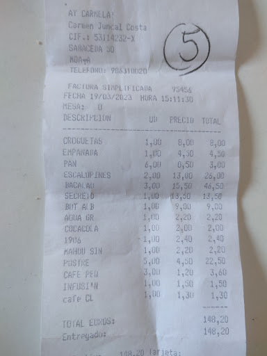 Read moreHace 7 días fui con mi familia a comer hicimos la reserva un mes antes. Llegamos puntuales como nos dijeron. Hasta ahí bien. Pero una vez que tenían que servinos los segundos tardaron más de una hora. Era churrasco. Servían antes a las mesas que llegaron más tarde que a nosotros. Las raciones pusieron en cada mesa (ni siquiera podían ponernos en una mesa forma de U o L cuando espacio había.) Pusieron en una pusieron 3 raciones para 11 personas teníamos que estar buscando a los camareros para que nos atendiesen y pedir las demás raciones que solo trajeron 1 más. Luego a la hora del postre que estaba incluido en el menú. Solo trajeron la tarta que la llevamos nosotros y la pagamos nosotros con la consecuencia que luego a la hora de cobrarnos nos cobraron los postres sin servirlos. Y querían cobrarnos un menú de un niño que no tenía concertado el menú que no comió de ese menú. Y a la hora de reclamar aún nos echa la dueña la culpa de que lo pedimos así. Cuando no lo es. En fin hubo una gran falta de organización, servicio, empatía y profesionalismo. Con la consecuencia que algunos de la mesa eran clientes ya no regresarán y los demás eran su primera experiencia tampoco volverán ni recomendaran. La factura superaba...
