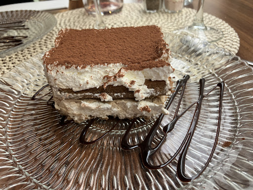 The food is lovely. Like, really lovely. To start, my husband and I shared a specials dish - basically mozzarella, tomato and basil. It was simple and fresh tasting. For our mains, my husband had a steak with potatoes and pepper sauce. The meat was lovely (I tried some). I had a porcini mushroom and pancetta risotto - absolutely delicious! A very generous portion too. I would have been more than happy had I stopped eating then however as all the desserts are handmade, it seemed rude not to have the tiramisu... And boy was it worth it! Beautifully presented and just delicious! Criss crossed chocolate sauce on a glass plate with the tiramisu on top with strawberries to garnish. Also, a sugar cube burning thus leaving a small amount of caramel (get it quick though before it hardens?). Highly recommend it. All of this was washed down with prosecco (very nice and not too dry), and the house red.