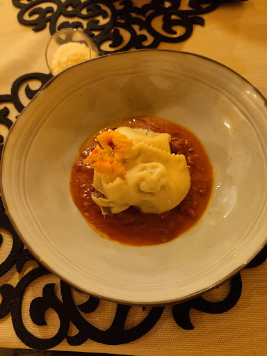 Amazing experience! We were greated with complimentary prosecco and a complementary starter with sundried tomatoes, a pasta with hamcream. We ordered a glass on italian red wine which were really good and also got some complimentary homemade bread with oliveoil and salt.