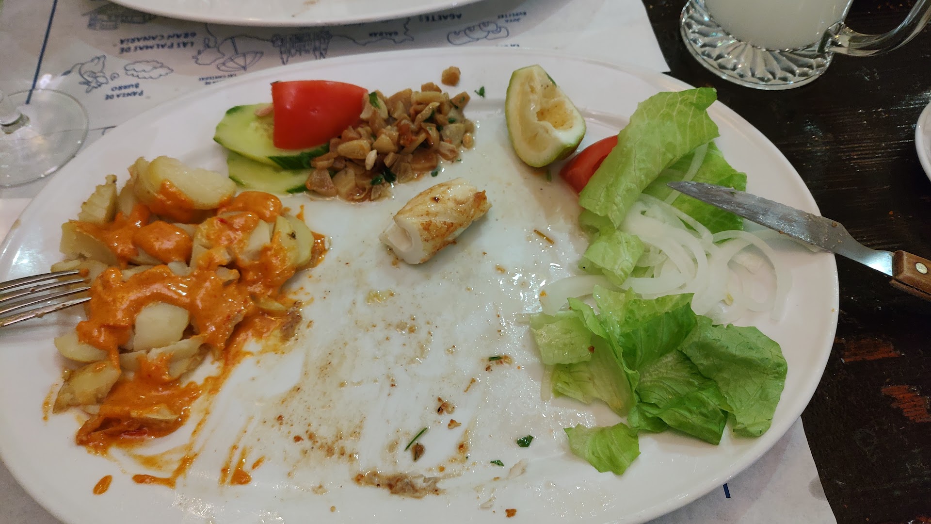 Storhetstiden var for over 25 år siden, som interiøret vitner om. På veggene kan man lese at restauranten var "best og the year" og "recomended" i 1996/1997, men ikke noe nyere. Dårlig akustikk som gjør at lydnivået blir svært høyt selv når det bare er 1/4 gjester der. Ingen lys på toalettet, håndsåpen var tom - og så til det verste: maten og lureriet! Når vi bestilte drikke fikk vi spørsmål om vi ville ha vann, ja sa vi, og den endte selvfølgelig på regningen til slutt. Etter vi hadde bestilt maten satte dem to halve baguetter på bordet med aioli som vi spiste.. Grønnsakene som kom med maten var frossent og kokt opp, salaten var strimlet gulrot og løk på to store salatblader. Blekkspruten jeg spiste hadde omtrent 10 hvitløksfedd på seg som var overkvalmende. Tunfisksalaten som en annen gjest tok var en seng av løk og tomat med kattemat-tunfisk på toppen. Når regningen kom hadde de tatt betalt for 2x brødet som de satte på bordet som vi ikke hadde bedt om. Vi sa det til servitøren, og hun sa at alle gjester får brød som må betales for, og vi må si at vi ikke vil ha det for at de ikke skal ta betalt for det.. Det er å lure folk. Når restauranten gir deg noe du ikke har bedt om så må de hvertfall informere om at de legger til 20NOK per halve baguett på regningen. Hun sa bare "jammen dere spiste brødet, gjorde dere ikke? Da må dere betale". Det handlet ikke om pengene, men om prinsippet. I tillegg er det en familiedrevet restaurant, så du må være klar for høylytte småbarn som danser rundt bordene, kjører sparkesykkel inne og behandler lokale som en barnehage. Frarådes på det sterkeste! Det var veldig dyrt også, så ta pengene dine et annet sted!