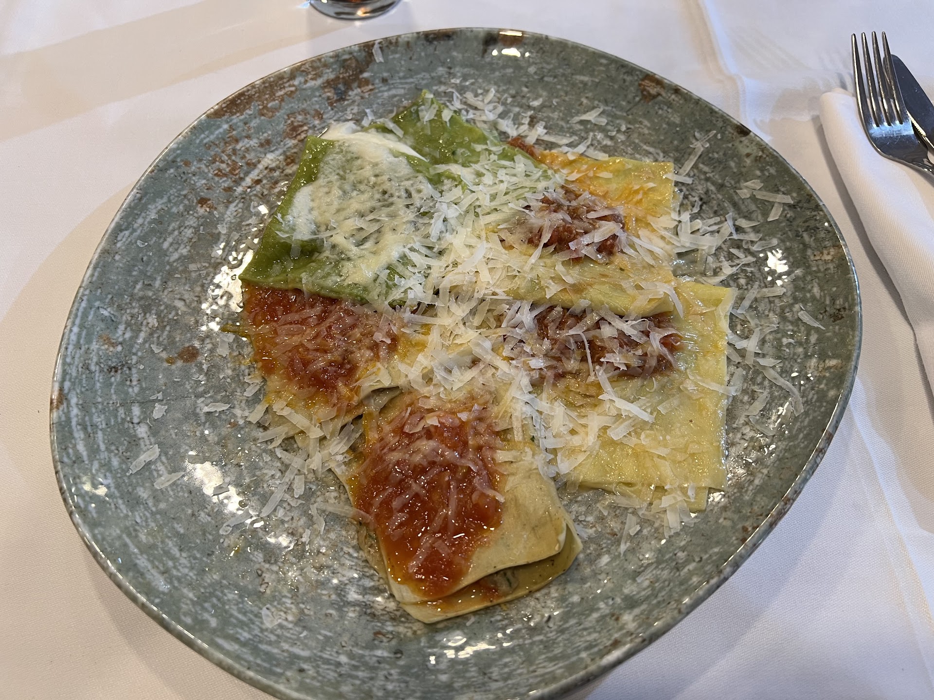 The atmosphere was just like the restaurants in Bologna I’ve been to. Authentic modern Italian. The staff were amazing. Just like a family. The young man outside like a fun and playful little brother. The waitresses inside were the sisters and mama or papa chef in the kitchen. Everyone was very professional. We were neither hassled nor left forgotten. Our waitress… the dark haired lady (sorry for not knowing your name) was knowledgeable and polite. Then there was the food. For not having the local ingredients from the foot of mount Vesuvio, it was damn near close! The pasta was al dente and you could taste every ingredient in it. The fish was perfectly cooked. Smooth but still light and crispy. The bruschetta was just a little bit too sweet. I guess the tomatoes were a bit sweeter than I’m used to. Personal taste. I like to have balsamico on mine. But the bread as awesome and portion sizes generally were spot on.