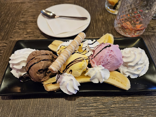 Read moreDecided to try a meal here as staying in one of the nearby hotels & the reviews were good. Staff were welcoming & friendly, we ordered two steaks one fillet and one sirloin my husbands was cooked how he asked however my fillet was undercooked I asked for medium rare & inside it was raw in places. Although under cooked the meat was very tasty & it was served with mixed vegetables & potatoes all very delicious. The desserts were huge icecream & banana split both yummy. I made the staff aware of the under cooked steak when asked if everything was OK with our food. I would recommend it here as the...