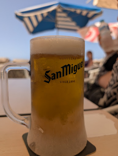 I can not understand the hype about this place. We visited in last week of February 2025, there was a line waiting outside, not to be seated, but to catch the place, so I was thinking how amazing this place have to be. We gave up waiting after 20 minutes and went to the beach in front of restaurant and came back in about another 20 minutes. Found a table inside and instantly regretted it. Dirty place, dirty tables, smelly.. Fortunately, free table popped up outside, so we switched to nicer environment. The view was very nice. Staff came to clean the table, left in the middle of doing that and came back good 10 minutes later, took the order because we cleaned by ourselves. Our order was "Fish of the day", Papas arrugadas and Shrimps. Fish was tasteless, papas were just boiled, not even a hint of a fine salt crust, mojo rojo was so garlic-ish, that it was impossible to feel any other taste. On the other hand, shrimps were amazing, fresh, tasted great (personally, I would serve them with less oil...