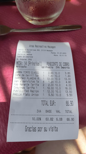 Read moreFuimos a almorzar y fue un auténtico DESASTRE.Le doy 1 estrella porque no puedo darle menos. Nos sentamos a las 1500 y eran las 1530 y no nos habían tomado nota de la comida,yendo con 2 pequeños y habiéndolos llamado más de 5 veces a los camareros.Servian platos e incluso cobraban a las otras mesas mientras a nosotros nos decían un momento por favor, quedándosenos cara de tontos. Y lo peor estaba a la mitad o menos de su capacidad....una verdadera vergüenza.Acudieron cuando muy enfadados dijimos que nos íbamos ... Para remate la comida era cara y de malísima calidad, pedimos sardinas y estaban pasadas y secas, la ración de coquinas tenía una salsa insipidísima no tenían sabor,una pena con el precio que cobran por ellas, todo fue un desatino. Como colofón solo puedes aparcar en parkings cerrados de alrededor que te cuestan 3€ y que les da igual que tú vayas al chiringuito,te dicen que son una empresa...