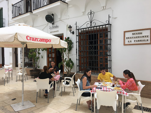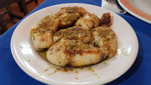 Durante nuestra visita a Moguer llegó la hora de comer y, a pesar de que yo tenía anotados varios sitios, preguntamos a los locales, quienes nos recomendaron ir al Restaurante La Parrala, cerca de la Plaza del Ayuntamiento. Al parecer el nombre del local hacía honor a Dolores Parrales Moreno, conocida como La Parrala, antigua cantante de flamenco que al parecer llegó a ser muy conocida en la época, y que había nacido en Moguer. Al llegar tomamos un vermú de la zona, llamado Onuba (de Bodegas Infante, en La Palma del Condado, y que al parecer sigue una antigua receta de la zona con ajenjo y otros botánicos), con una tapa de huevas con mayonesa (yo le pondría un poco menos de mayonesa...). Posteriormente nos sentamos en una mesa para comer, siguiendo las recomendaciones del camarero, que resultaron estupendas: -Huevas de choco -Rabo de Toro -Raya -Postres: helado de turrón y galletas fritas rellenas de vainilla. El vino que nos aconsejó era Garay Prásino, elaborado en la zona con Listán blanco, buenisimo. Para acompañar al postre probamos un típico vino naranja del Condado de Huelva, concretamente de Bodegas Iglesias (en Bollullos del Condado). Al parecer el Vino Naranja del Condado de Huelva se obtiene con vino o mosto, certificado por el Consejo Regulador, al que se le añade cierta cantidad de alcohol vínico que previamente se ha dejado macerar con cortezas de naranja amarga. Se envejece por el sistema de criaderas y solera durante al menos dos años. Pagamos por todo 53,9€, que nos pareció estupendo. La comida, casera, estaba exquisita, preparada con gran cariño, abundante y el personal muy amable, un sitio para...