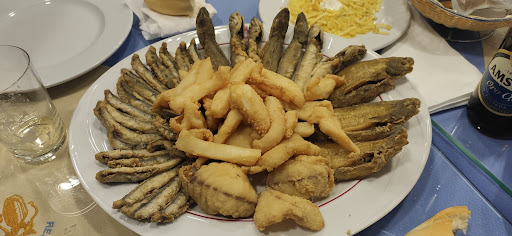 Traditional and delicious. The best of all is the people who worked here. The jell at you!!! But that is the "Choquero style" Ask to be attended by Paco, a very gentle man. Maybe the food is the same all around, but the experience of eating isn't. I appreciated the use of olive oil and vinegar in my mixed salad and extra olives with every wine glass. I tried the "revuelto gambas y zetas" which is seafood with special mushrooms and scrambled eggs. For the fish lovers, you would find here 14 different types of fish + octopus ( it's not a fish) In seafood section there is gambas, langostinos, cigars, cañaillas, oysters, almejas and more and DONT FORGET: torta 3 chocolates (home made 3 types chocolates cake) AMazing!! I payed 23.80€ with also 2...