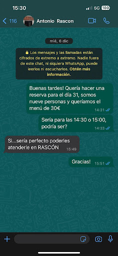 Read moreTeníamos una reserva el día 31 de diciembre por mensaje especificando día, hora, personas, y menú, y la respuesta por su parte fue explícitamente “Si…sería perfecto poderles atenderle en RASCÓN”. Hoy cuando llegamos al bar a la hora determinada nos responden con un no hay reserva de nuestra parte, incluso enseñándoles el mensaje nos responden que eso no es manera de reservar y no nos dan ninguna solución, quedándonos sin reserva en un día tan clave y a las 15h de la tarde, llevando con la reserva hecha desde el 6 de diciembre. El trato no ha sido bueno, no volveremos al...