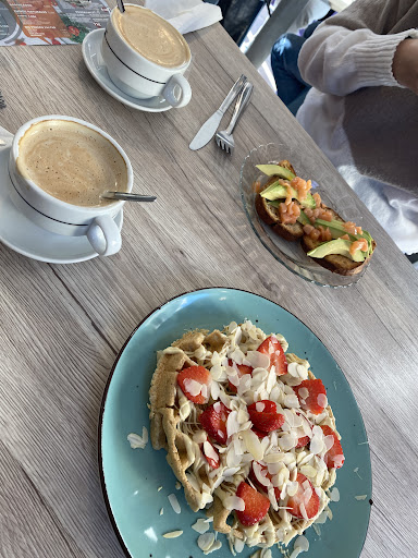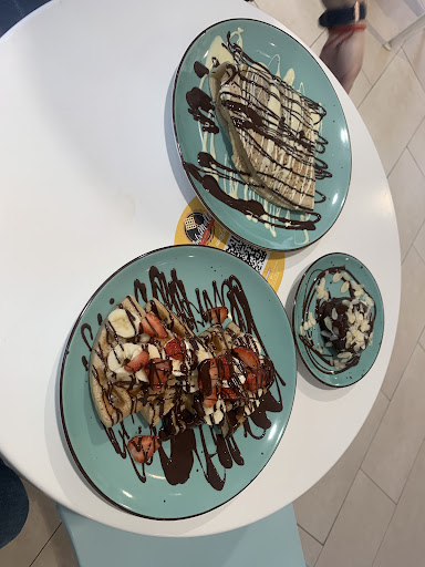 Me dejé llevar un poco y al final he pedido, una crep, un gofre y una dona, todo eso acompañado de dos zumos uno que era verde (Buenisimo) y otro que tenía fresa, banana y algo más que no recuerdo, pero que también estaba bien rico.