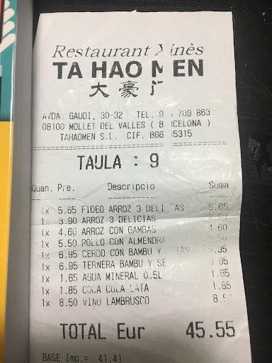 Read more"FATAL, NEFASTO" y no es la primera vez, nos hemos ido sin comer después de esperar más de una hora, con nosotros 4 mesas más y clientes muy cabreados, con la excusa que han venido muchos clientes, uno tiene que conocer sus limitaciones. Es un sitio que hemos ido desde que lo inaguraron hace más de 20 años y los primeros dueños lo hacian muy bien pero han ido cambiando de propietarios y cada vez es peor, los sabores y texturas no son lo que eran, hemos estado un año sin volver y les hemos dado muchas oportunidades, a pesar que es el sitio que mejor guisan de Mollet, (exceptuando algunos platos), pedimos unas gambas Beijing sal i pimienta y nos las pusieron rebozadas sin pelar y con los excrementos del intestino. Los tallarines no son de pasta china sino italiana que no saben igual. El problema que tienen es que priorizan la comida que hacen para llevar y desatienden el restaurante, porque saturan a la cocina. Esta ha sido la última vez, no volveremos más. Para comer buena cocina china autentica, por la zona del Arc de Triomf en Barcelona,...
