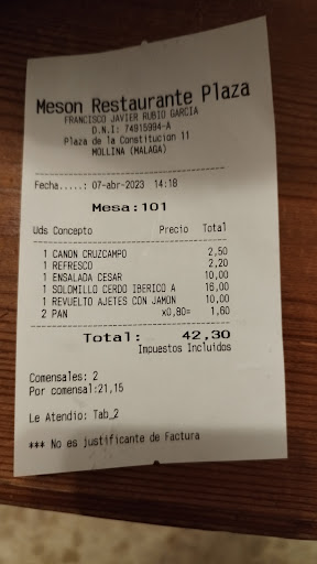 Read moreLarge menu with plenty of choice. Great fish and chicken dishes. Friendly & helpful service. Seemed to appreciate our attempts to converse in Spanish. Menu in Spanish and English. Value for money. On pretty square by the church. Full of locals which is always a good sign. Been a few times already. Will...