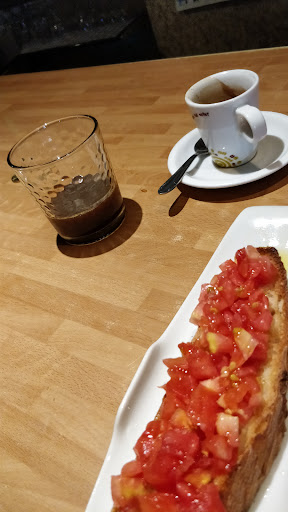 I must have looked tired, because for a coffee and this paella tapa I was asked only 1€ . Welcoming place, frequented by the locals