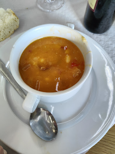 Read moreLugar absolutamente anodino. Se nota que está visitado porque por ahí transita uno de los caminos de Santiago. Paramos con el coche y pudimos comer. El servicio del camarero fue cordial, pero la comida era abominable. Pedí menú, el cual voy a describir: fideuá deshecha literalmente, más pasada que el almanaque de 1997 de un taller con la foto de las mamachicho, con un mejillón en todo el plato, el cual se había reventado por todos lados la concha y a cada bocado rechinaba en los dientes con mini piedritas de mejillón. Luego vino el churrasco, una pieza que sería de segunda pero que no tenía mal aspecto por el género, sino por la manipulación del mismo. Patatas crudas y sosas y carne cocida y chiclosa, pasada de nuevo, y con un cuchillo de mantequilla para poder cortar semejante reto de un dentista. El café (me dio miedo pedir postre) quemado y de torrefacto... No tiene una estrella por la continua amabilidad del camarero, pero desde luego maltratar así el género...