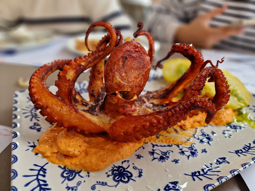 Desde el primer momento, el trato fue cercano y atento 🤝, con ese aire familiar que sólo se encuentra en los sitios auténticos ❤️. La comida... ¡espectacular! 🔥 Probé el pulpo a la brasa con patatas y mojo verde 🐙🥔🌿, perfectamente cocinado, sabroso y con una textura que se deshacía en la boca. Las gambas fritas con su salsa casera fueron un vicio 🍤🔥, y la fritura de pescado con aceitunas, una joya sencilla que me hizo sentir como en casa 🐟🫒🏠.
