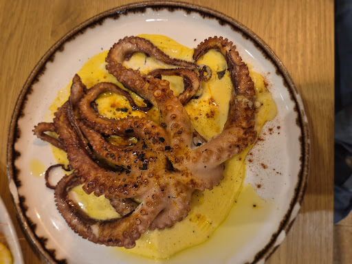Mala experiencia. Las raciones súper pequeñas y el servicio muy malo. Pedimos unas croquetas para una niña y nos dijeron que no había y dentro había niños comiendolas. Pedimos pan y nos dijeron primero que iban a ver si había, después que lo estaban tostando y finalmente nos fuimos sin el pan. Las raciones de calamares tocamos a 1 y medio y éramos 5. Las puntillitas más de lo mismo y los tintos de verano a 5 euros. Pedimos unas patatas con 4 patatas dos huevos jamón ( que era lacon🤔) y el foi que brillaba por su ausencia. La primera vez que pago 100 euros en un restaurante 25 por pax y tenemos que volver a casa a cenar. Malisima experiencia. Una...