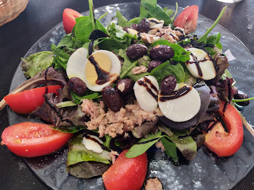 Very comfortable place at less than 200 meters from the beach. The place is big, and quiet thanks in part to some classy music in the background. The service is probably the best thing of this restaurant. Fast is the way to describe it, took them less than 3 minutes to serve me the main (paella) after I finished the first dish (salad). Tastewise the food is more than OK. I enjoy the experience everytime I come over. The price is not high at all,11.5€ the daily menu with first, main, dessert and drink. And just incase you didn't know, there is a swimming complex. Ideal to spend a whole day...