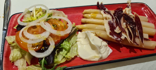 Read moreRestaurant area is nicely decorated, and we were excited to find a menu of the day on a weekend. Unfortunately the artichokes and peppers were surely canned, and everything came way to salty. Entrecot and solomillo were good as was the cheesecake. Skip the coffee cake - it's coffee flavored flan with an...