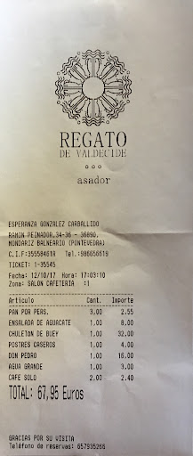 💥Uno de los mejores Restaurantes que me he encontrado últimamente, observo con agrado que la cocina gallega está sin ninguna duda en la élite..., es ilusionante encontrarse establecimientos y profesionales que con su trabajo la significan y potencian.., utilizando los mejores productos de la tierra que ademas cultivan con mimo y cariño... 👉🏾Estuvimos hospedados en el Balneario de Mondariz, y ya habíamos oído del buen hacer y el prestigio de este Restaurante... "REGATO DE VALDECIDE" establecimiento muy agradable, con grandes espacios, y buenísimos Profesionales... Así que lógicamente allí fuimos..., con reserva como es lógico..., una noche de sábado y con mucha lluvia y viento..., Desde la entrada el trato fue Atento y como siempre diré.. MUY PROFESIONAL... Una vez explicada la carta con gran conocimiento de la materia y con una gran empatía y Profesionalidad por ALEJANDRO..., nos decidimos por.. 🍴Empanada de xoubas, casera, desespinada y elaborada a diario. 🍴Croquetas artesanas de Cecina hechas con el cariño de toda la vida. 🍴Costilla de cerdo, acabada con un estupendo glaseado de reducción de pollo y mostaza esta costilla está confitada en aceite con canela y anís estrellado. 🍴Carrilleras de Ternera guisada 4 horas en vino de mencia, servida con su salsa y con una base de puré de patas. De postre... Torrija de Brioche y helado de haba tonka Souflè al Grand Marnier con jarrita de chocolate caliente... Bebimos agua de la casa mictofiltrada, sana y buena..., Un gran vino de la Rioja Alavesa con uva Tempranillo, las uvas proceden de viñas que superan los 30 años de edad y cuya producción es inferior a los 5.500 kg/ha. La vendimia se efectúa manualmente. Posteriormente, la uva es despalillada en depósitos de acero inoxidable a una temperatura inferior a los 28º. Y con los postres pedí un Oporto Vintage, pero Alejando muy acertado..., me presento, aconsejó y convenció para tomar un gran vino dulce Gallego..., "ARMAN DOCE" que quiero describir por su calidad... El vino dulce de Casal de Armán, Casal de Armán Doce utiliza para su elaboración uvas Moscatel de Grao Miúdo recogidas en su punto de maduración con racimos seleccionados. Prensado de uva congelada (-20 ºC). Fermentación muy lenta. Parada de fermentación por concentración de azúcares. Vino Naturalmente Dulce. Reposo en depósito y en botella antes de salida a mercado. El origen de las uvas de Casal de Armán Doce son Viñas Viejas situadas en suelo de arenas graníticas y esquistos, en terrazas (socalcos) y laderas situadas en la región Valle del Avia – D.O. Ribeiro. 🍽️ESTIMAD@S LECTORES/A OS RECOMIENDO SIN NINGUNA DUDA VISITAR MONDARIZ BALNEARIO Y EN ESPECIAL HACER UNA RESERVA EN "REGATO DE VALDECIDE" Y DISFRUTAR DE SU GRAN COCINA...