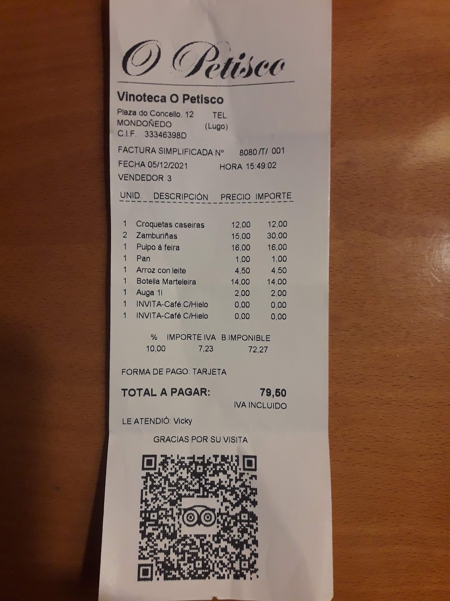 Para terminar,deciros que he leído alguna reseña negativa de algún cliente que también ha visitado.O Petisco y no los veo.para nada objetivos,sino al contrario,movidos por alguna extraña motivacion personal por criticar sin motivos al personal de este local o la calidad de sus platos,que para nada compartimos los cientos de clientes que han disfrutado en O Petisco y así lo hemos reseñado positivamente en nuestras reseñas...