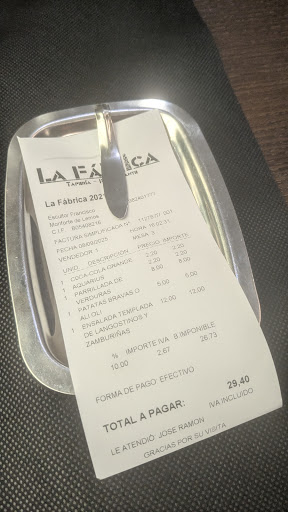 Pulpo a la gallega Berberechos Trio de carnes Bacalao a la fábrica Botella de vino Clara de limón 2 sopas de chocolate blanco 4 cafés 2 chupitos (a cuenta de la casa)