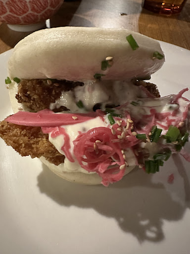 Bao de gambón rebozado. Correcto, en especial la salsa.