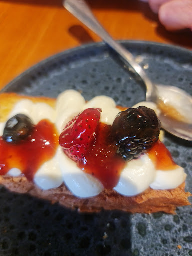 An urban bistro type of experience in a rural town of Galicia. Young team probably doing their best to create something different - but if Trespés would be even in more touristy area of Spain, it would either have to do better or go under. The first impression when walking in is that the front desk was more interested in chatting with customers known / friends than charming potential new clients. After looking for the name, the reservation was made of he pointed upstairs. There was no "let me show you" neither was there anybody to guide us to our table. We simply chose one. We had time to discuss the deco and plating because the service was slow. The effort was clearly made by a young, inexperienced team. When the waitress finally came, she was genuinely nice, a person with a positive, cheerful attitude, good knowledge of the menu, courage to suggest different dishes, and choose a wine based on request. There were no nibbles bought to make the time go faster. The starters were good, a local cured ham and mushroom salad, and a delicious vegetable- seaweed tempura with sweet soy dressing. The main course was rice with seafood, a simplified and glorified paella with two blobs alarmingly reminiscent of commercial condiment which was not needed nor added anything to the taste. The second mains was a decent wild boar loin. It would have been needed to provide a sharp steak knife with it, cutting it with a standard one was hard work. The dessert was a toasted slice of sponge with coulis, overtly sweet whipped cream, and some berries; a dessert anybody can put together at home in a panic caused by surprise guests. Do we go back ? No - but not because the experience was bad. It simply wasn't worth a bill of over 90 euros. It's also extremely unfair to write this feedback after years of visiting top restaurants and quirky ones too in three continents. Trespés was simply a somewhat amateurish effort of a young, inexperienced team wanting to create an airy, urban bistro, and for us - but NOT for many others - it was a possibly not a disappointment but simply not an experience to be repeated. The establishment is immaculately clean, easy to find and parking was easy because it was Sunday. I wish them all the best...