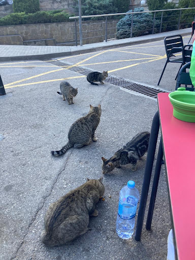Read moreWe enjoyed a delicious simple lunch, freshly prepared, of a goats cheese salad, a grilled chicken quarter with croquettes & delicious oven baked mushrooms, plus a glass of vino tinto. En route from Barcelona to Andorra; pleased to have discovered this adorable little ancient village and a truly local restaurant where lunch for 2 is under €20. We will visit again! Loved the troupe of beautiful tabby cats who waited patiently to eat up any scraps & posed gorgeously for their pics to be taken. Our puppy enjoyed the view (&...
