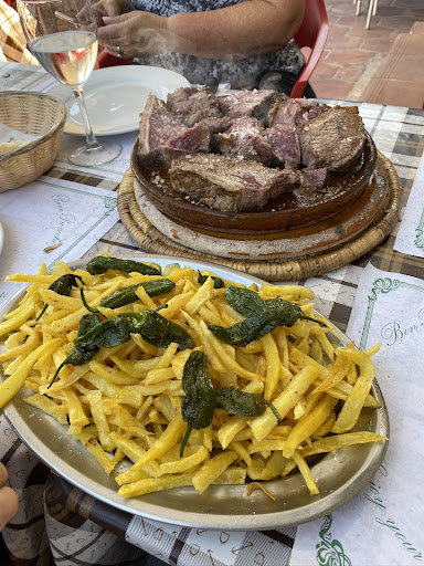 Lugar de comida casera batallera, nos pedimos unos primeros platos normalitos y de segundo un chuletón de ternera. Algunas opiniones decían que tenían buena carne a la piedra... Al llegar el "chuletón" me quedé pensando que quizás me había equivocado pidiendo otra cosa pero no me había equivocado.