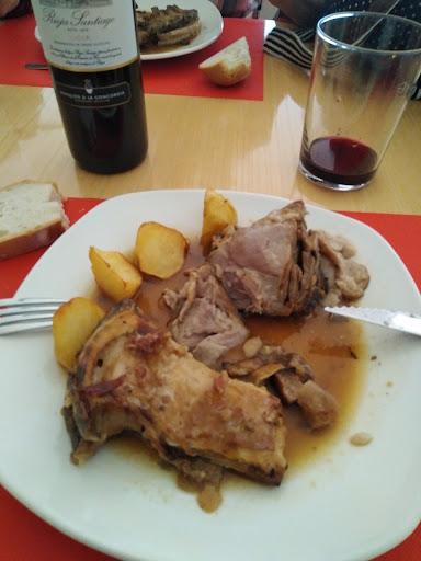 Read moreLa verdad esque cuando llegamos pensamos qué quizás las opiniones no eran actuales porque no tienen carta y era sólo menú. De primeras nos pusieron cerquita de la chimenea, lo que es de agradecer porque hacia frio, el primer plato purrusalda, nunca la habia ptobado y estaba muy buena! Segundo plato carne iberica a la brasa, bueniiiiiiisima!! Realmente haci muchiisimo que no comia una carne tan rica. El resultado fue que comimos muy bien por 12€ por persona. De postre una tarta de 3 chocolates tambien buena. Muy rbien comendable y sitio...