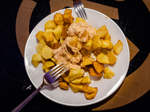 No son las mejores bravas que he probado, tampoco lo es la base de la salsa, que es industrial (Hellmann's), por tema sanidad lógicamente.
