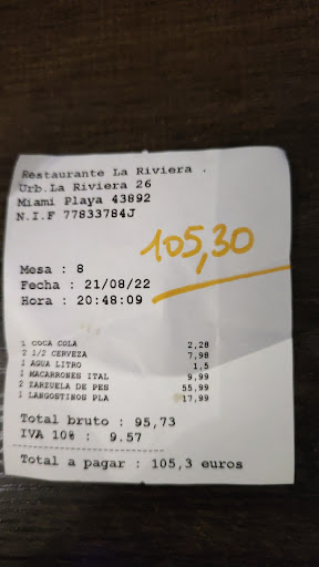 Read moreLa Riviera is a family-run beach restaurant. The staff including the owner himself make an effort, not everything is perfect, but they’ve got the human touch - different to the neighbouring resto Friends (more professional, more touristic). We very much liked the location, the service and of course the food. We had tapas (gambas, calamaris, patatas bravas) and veal filet with pepper sauce. All very enjoyable and not overpriced. We’ll definitely come back on our next stay at...