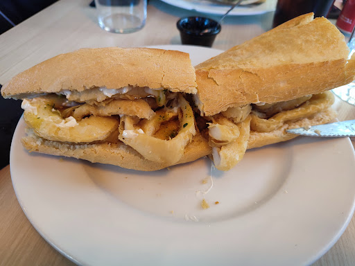 Read moreHorrible. Hacía que no comía tan mal en mucho tiempo. El arroz tres delicias, una bolsa ultracongelada al microondas y quemado. El salmón a la plancha tieso y que se nota se hizo a fuego rápido y en una sartén o plancha sucia porque venía negro y la ensalada de acompañamiento terrible y de mala calidad. Mi acompañante pidió garbanzos con almejas que al menos las cascaras sí estaban porque el interior en ninguna, y algo que se suponía que era redondo de cerdo con patatas fritas de bolsa, mal freídas porque estaban duras.