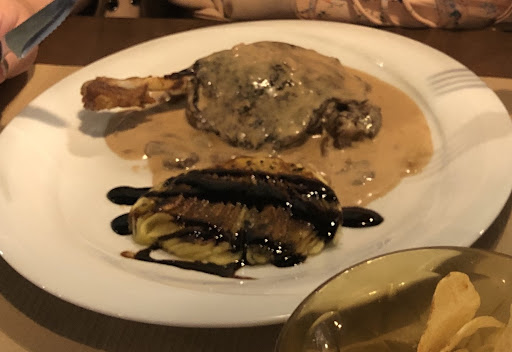 Read moreFuimos hace 4 días a comer y que mejor elección que este sitio y más si te alojas en las Termes. Comida muy buena y de mucha mucha calidad el solomillo a la pimienta y el solomillo al roquefort estuvieron muy bien hechos y muy jugosos desde el principio ya que es una pieza con un grosor algo considerable y les quedo muy bien. Por el resto de platos tenían muy buena pinta ya que los demás clientes la pedían y tenían una pinta estupenda. La atención es buena no tienes que esperar entre plato y plato y en el momento hay muy buena educación en el grupo que lo lleva si te tienen que asesorar no dejéis de preguntar por algún plato o alguna bebida. Los vinos muy buenos y el aceite igual ya que el vino es producido en montbrió del Camp. El ambiente que hay es muy familiar y te sientes muy agusto desde que entras por la puerta. Por último destacar el precio de los platos y la cena, no fue nada desorbitado se nos cobro 72€ por dos platos un entrante dos copas de vino, pan, postres y café. Pensamos que es un precio justo y correcto ya que también fuimos para cenar y siempre es algo más caro que...