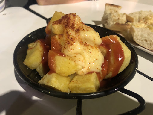 Read moreIntentan hacer comida o tapas a la forma de aqui y no saben... son personas que creen que han aprendido a hacer buenas tapas o bocadillos mirando como cocineros de aqui lo hacen y UN FRACASO TOTAL, encima precios muy por encima sobre todo en copas o parecido... por poner un ejemplo,...patatas con aceite muy viejo, un poco de ketchup de botella y ajoaceite cholvi...eso son bravas...ejemplo un gin tonic, que en el pub de al lado ( Pub ), vale un euro menos, fritanga y pan malisimo ( congelada la masa y mal horneado)...NO VOLVERE, y sobre todo porque me queje y me trataron muy mal, NO aceptan ninguna critica y personalmente tengo mucha experiencia en hosteleria y SE SABER ESTAR....NI LO RECOMIENDO NI VOLVERE NUNCA...Un desastre con los propietarios de hace año y medio...