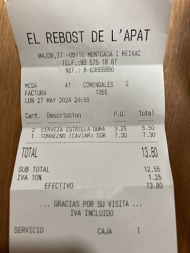 Read moreL'Apat era un sitio obligatorio para comer y cenar en Montcada, pero hace cerca de un año los dueños se jubilaron. Han vuelto a abrir pero el dueño es un chino y lo primero que ha hecho es poner máquinas tragaperras convirtiéndolo en "otro bar más". Siempre que paso por delante está vacío y aunque aún ponga El repost de L'Apat, a nadie engañan. Siempre nos quedará en el recuerdo las famosas patatas bravas, los bocadillos únicos, los montaditos y la simpatía...