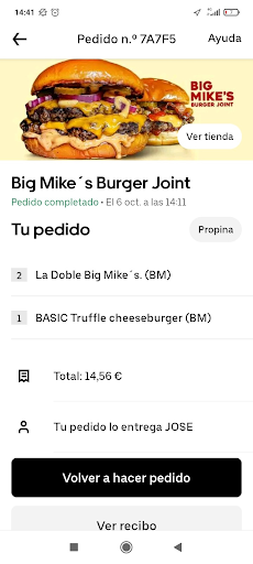 Read morePedimos atraves de la aplicación de Uber eats, tenían un promoción 2x1 en una hamburguesa, pedimos la promoción y otra más sin promoción es decir tres hamburguesas, cuando llegó el pedido llegaron solo dos hamburguesas, cuando llame para reclamar tardaron como 20 min en ofrecerme una solución, y me ofrecieron vestirme y pasar a por ella o que pidiera otra cosa, es decir que me gatastara otros 8 euros para que me trajeran la hamburguesa que ya había pagado. Total que pedí antes de las 14 y comí a las 15:30 dos hamburguesas frias una caliente y unos tequeños que no queria y tuve que pedir para que me trajeran la hamburguesa que me faltaba. En su favor añadiré que me dieron una Coca-cola gratis