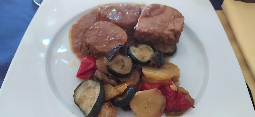 En mi última visita me sirvieron un plato enorme de salmorejo bastante bueno y secreto a la parrilla. La carne traía patata asada y espárragos como acompañamiento. Vaya esto como consejo y no como critica pero la patata estaba reseca, así que en este caso hubiera sido mejor no ponerla.