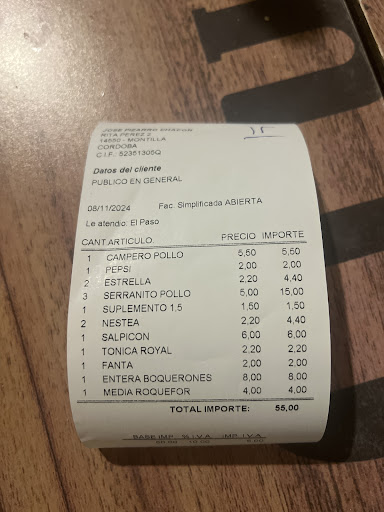 Read moremalísima experiencia, pedimos un serranito y el pimiento estaba en mal estado, lo probamos todos los de la mesa para comprobar que era así y tras decírselo nos dijeron que daba igual, que había que pagar por el serranito aunque no estuviese en buenas condiciones. no lo...