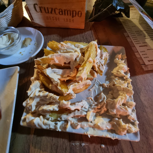 Read moreNous avons commandé des patatas bravas, on nous a amené des frites inondées de mayonnaise (pas des frites très bonne et une mayonnaise industrielle bien sûr)... nous avons essayé d'essuyer la mayonnaise pour manger... Je fais remarquer au serveur que ce n'est pas ça des patatas bavas il me dit que si que c'est des patates avec + de mayonnaise... super. Les croquettas de la maison étaient OK quoique très salées mais servies avec des patates fries insipides et pas assez cuites... Nous avons regretté ne pas avoir pris de sandwiches en en voyant passer pour d'autres tables eux pour le coup avaient l'air bons mais pour nous ce fut une mauvaise expérience malheureusement. Avec cela nous avions pris une planche de jambon ibérique, 12e pour la quantité et la qualité vraiment pas terrible nous avons trouvé...
